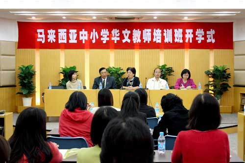 据华侨大学网站消息,11月19日,马来西亚中小学华文教师培训班开学式在华侨大学华文学院举行。马来西亚留华同学会会长陈志成、华文学院常务副院长金宁、领队林秋玉老师、钟玉金老师和来自全马来西亚的66位老师出席了开学式。